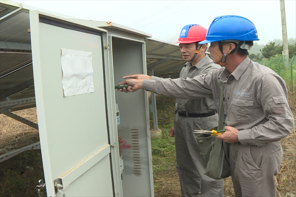 本网讯记者刘毅通讯员王君逸 刘捷璇报道:7月27日,宜城供电公司刘猴供电所技术人员来到赵咀村光伏电站,定期对电站光伏板及相关设备进行维护检修,保障发电项目正常运行。