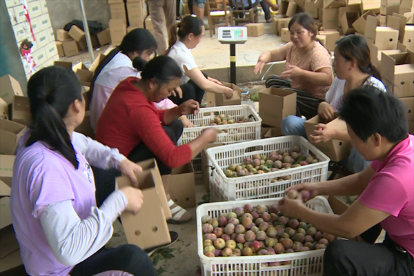 7月27日,记者在田集村快递集中点看到,20多名村民正忙着打包、称重、装货……仅当天就发货芙蓉李8000斤。