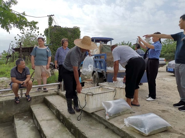 为恢复汉江生态环境,保护野生鱼种不缺失,8月24日上午,朱某、何某二人家属在市森林公安局、市检察院工作人员监督下,在汉江窑湾码头进行生态修复、增殖放流。共投放价值6000多元的鱼苗,其中包括白鲢鱼、花鲢、草鱼、鲫鱼、武昌鱼苗共30多万尾。