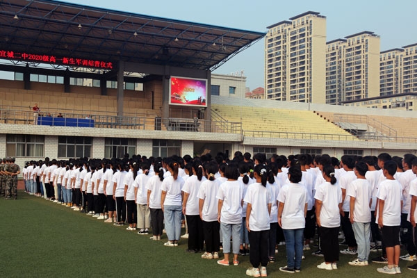 本网讯记者刘毅通讯员周正华报道:8月31日,宜城二中举行高一新生军训会操表演,为期四天的2020年新生军训圆满结束。