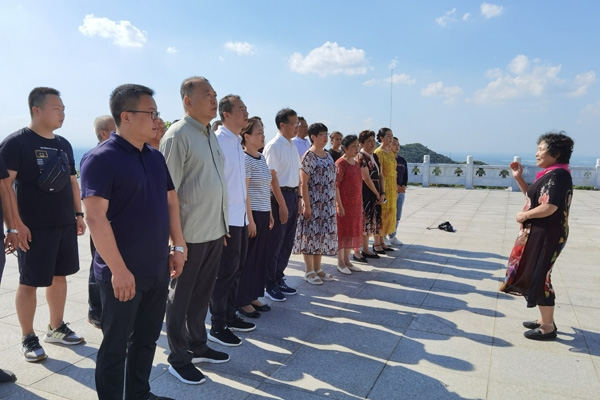 阳光下的张自忠将军殉国处纪念园庄严肃穆,纪念碑前,全体人员向张自忠将军敬献花篮、鞠躬致敬,并合唱爱国歌曲及黄埔军校校歌,表达对革命先烈的无尽怀念和哀思。