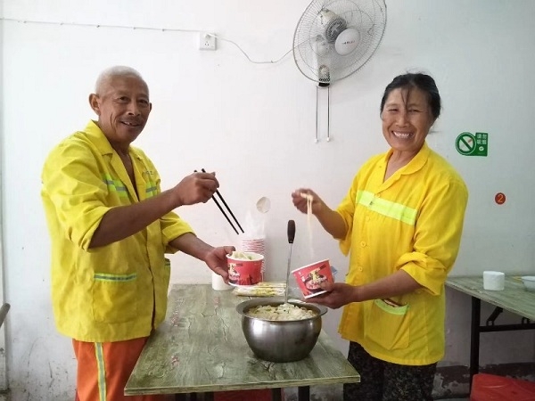 环卫工人张阿姨从振兴路免费爱心粥店2017年开业那天开始,基本上天天来店吃早餐。“我们凌晨三点钟就起床扫地,经常吃不上早餐,饿得难受,感谢爱心粥店为我们提供免费早餐。”张阿姨感激地说。
