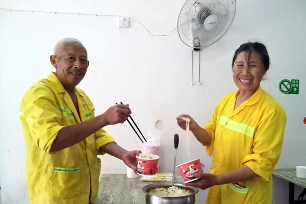 很多环卫工人慕名来这里吃面。凌晨4点半,55岁的孙大伯准时到自忠路清扫道路卫生。6点半,完成第一遍清扫后,他就到这家爱心粥店吃上一碗热面,这是孙大伯一天最开心的时间。 “一大碗面吃完,身上热乎乎的,干劲也来了。”孙大伯边吃边说。