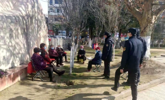 “大爷、大妈,不要多人围在一起聊天,晒太阳可以,尽量保持距离,记得戴好口罩。”2月2日,在紫盖山广场,宜城市城管局城中中队执法队员耐心的劝导着一群围在一起聊天晒太阳的老人。“好的,小伙子们,你们辛苦了,我们以后注意,马上回家去。”对于城管队员们的劝告,老人们非常理解,于是就各自带着小凳回家了。