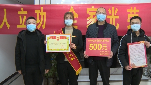 本网讯记者谢丛阳通讯员丁雪俊报道:2月8日,宜城市退役军人事务局、龙头办事处相关负责人一行,将“三等功”喜报送到优秀军人吴海南家属手中,向他们表示祝贺。