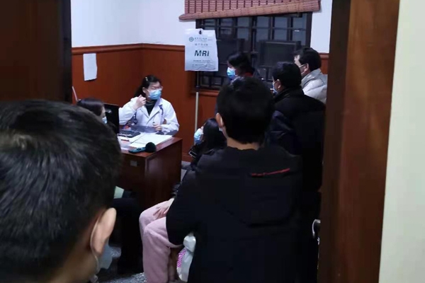 门诊一楼人头攒动。到处都是病人和家属。一个诊室根本无法接诊、处理。留观室里的病人换了一个又一个,不停的在分流、处理。值班医生又紧急打开一个诊室,启动2台电脑分开处理病人,这个诊室又马上涌满了病人。