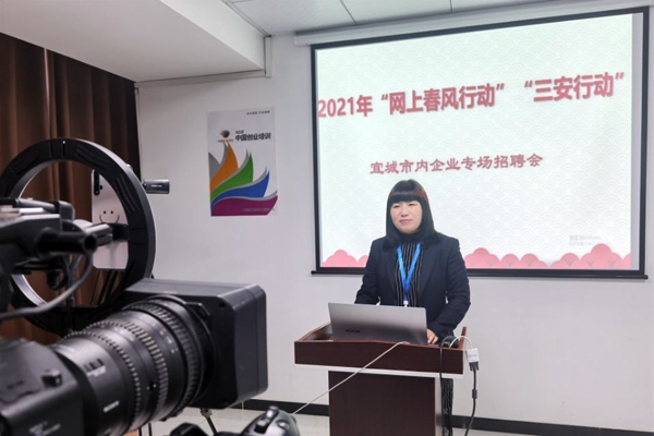 本网讯通讯员程巧云记者周波报道:2月19日,由宜城市人社局主办、宜城人才创新创业超市承办的2021年“网上春风行动”“三安行动”年后第一场线上招聘活动开启,为求职者提供多项就业创业服务。