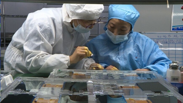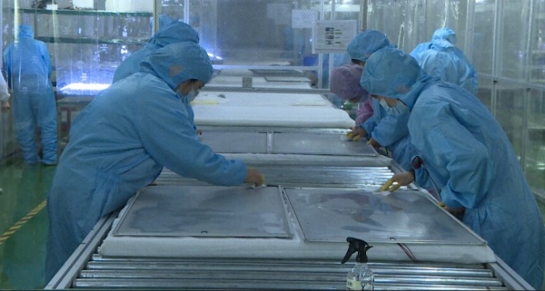 在湖北如新电子有限公司的生产车间内,5条全自动生产线全速运转,工人身穿洁白的工作服加工、检测、包装液晶显示屏,一片忙碌景象。