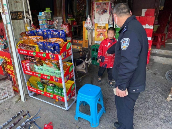 随后,男孩父亲和民警约定好地点后,民警将小孩交到小孩父亲手中,小孩父亲对民警表示感谢,民警也不断提醒其家人要看管好小孩,尽量不要让小孩离开家人视线。