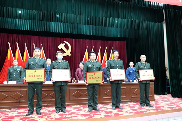 宜城市委常委、副市长蔡正方宣读2020年度表彰通报;宜城市委常委、人武部政委刘润栋对全市武装工作进行部署;孔湾镇、郑集镇、南营街道办事处、流水镇党(工)委书记先后进行武装工作述职。