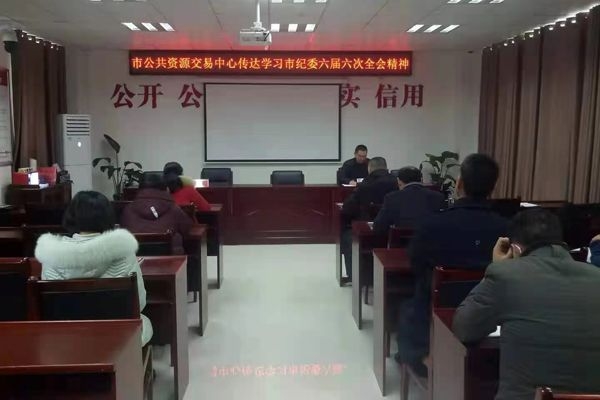 本网讯记者邬玲玲 通讯员陈红艳 林双双报道:2月25日,宜城市公共资源交易中心召开中心组专题学习会,认真传达学习贯彻市纪委六届六次全会精神。