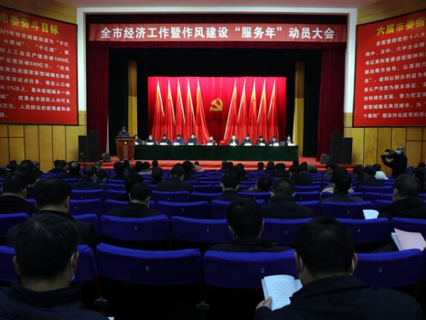 本网讯记者李勤 周波报道:2月28日,宜城市经济工作暨“服务年”活动动员大会在人民会堂召开,贯彻落实襄阳市动员会精神,进一步转作风、优服务,紧盯“县域经济发展在中部地区排序前进6—8位”目标,继续念好“招、改、建”三字经,以时不我待、分秒必争的状态,奋力实现开局漂亮、全局精彩,奋力创建“千亿级、五十强、幸福城”,以优异的成绩向建党100周年献礼。