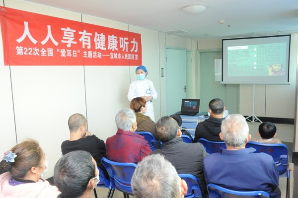 本网讯通讯员杨永翠报道:为进一步宣传爱耳常识,提高听力疾病预防意识,3月3日下午,宜城市人民医院耳鼻喉科在病房内开展爱耳科普知识讲座。