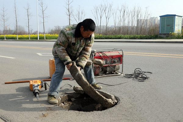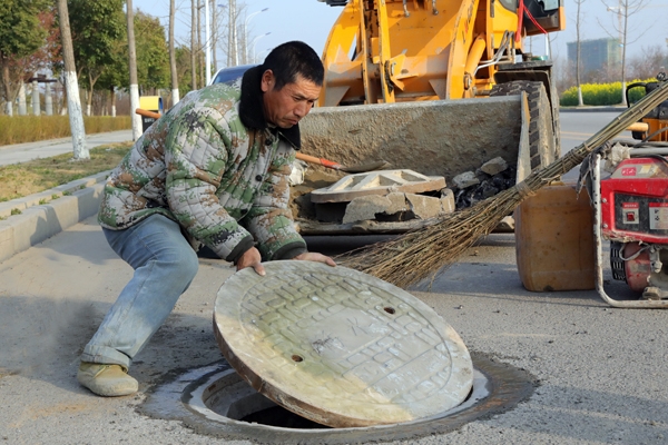 工人撤除破损井盖