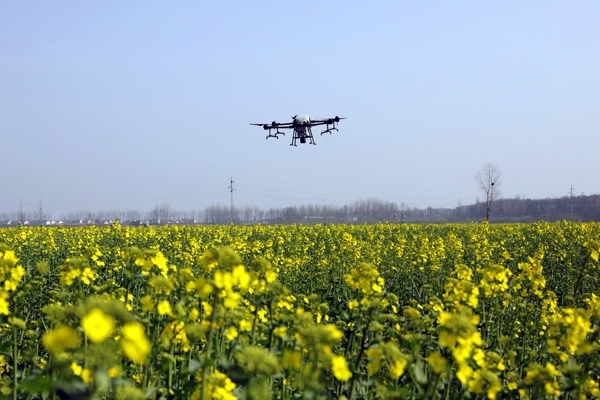 本网讯记者李勤报道:春季是田间管理关键时期。近日,记者在雷河镇和平村油菜田里看到,一架无人机正在作业,预防菌核病。