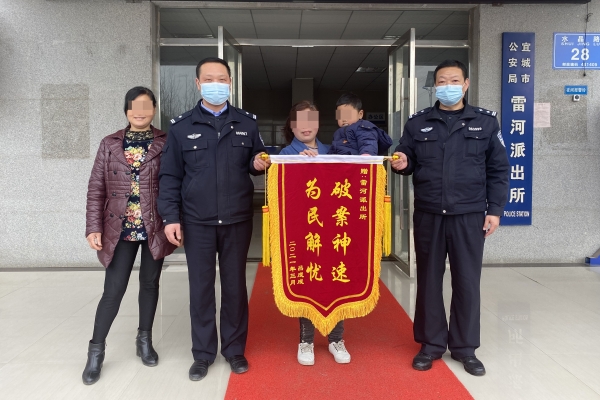 本网讯 通讯员汤洁 史小晶 记者张尚东报道:宜城一男子到超市避雨,见门口停放一辆未拔钥匙的电动车,临时起意将车偷回家,途中还将遮雨棚拆卸扔掉,本以为万事大吉的他又返回超市,准备骑回自己的摩托车时,被守候在此的民警逮了个正着,仅1小时,宜城市公安局雷河派出所破获此案。3月10日,吕某及妻子赶制了一面印有“破案神速 为民解忧”的锦旗,送至办案民警手中,以表感谢。