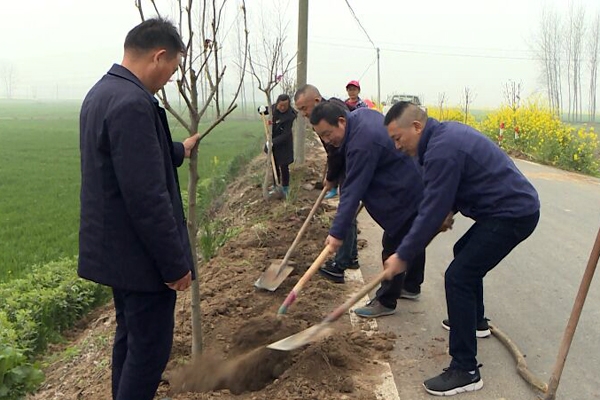本网讯记者郑雪飞报道:又是一年春光好,又到一年植树时。3月16日,市融媒体中心、市交通局50多名干部职工来到郑集镇石孙村,开展义务植树活动,为乡村振兴增添新绿。