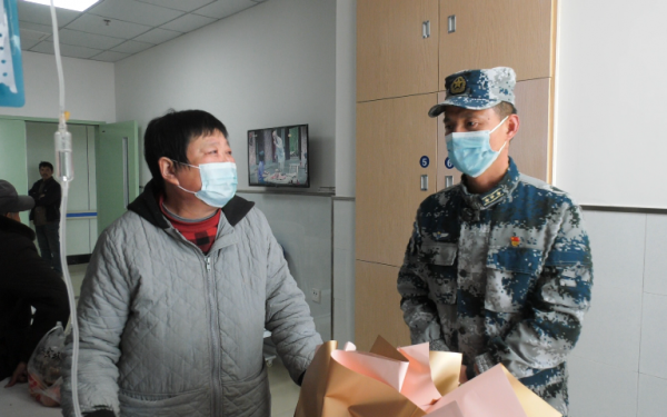 市人武部和相关单位负责人一起到医院看望了周家豪的父亲,希望他的父亲安心养病。