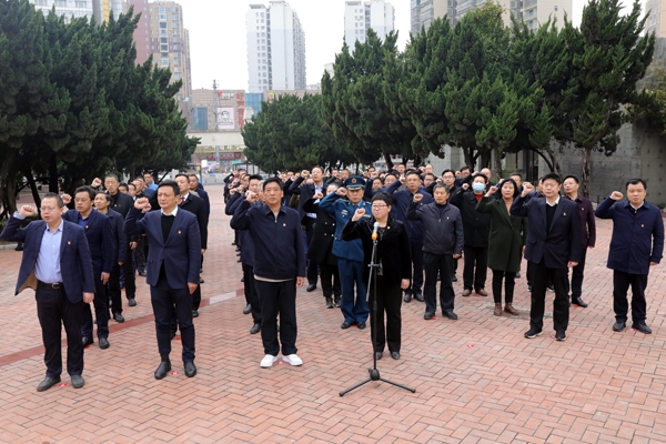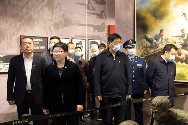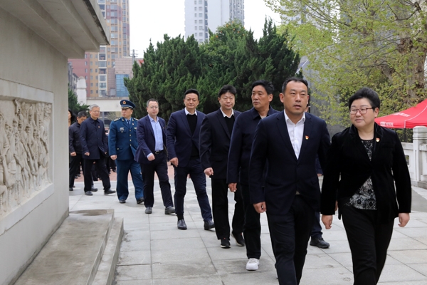 在庄严肃穆的革命烈士纪念碑前,全体党员干部排着整齐的队列,奏唱《中华人民共和国国歌》,向烈士默哀致敬。市委书记郭静上前整理花篮缎带,并领誓全体人员面对党旗重温入党誓词。随后,大家瞻仰了革命烈士纪念碑,参观革命烈士纪念馆。