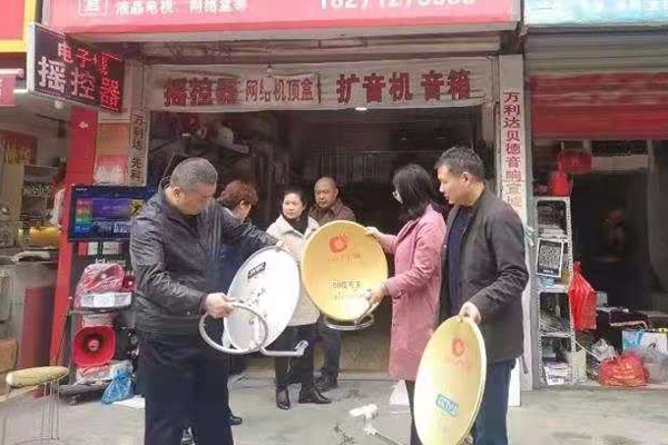 本网讯通讯员黎建荣报道:为庆祝建党100周年,确保广播电视和网络视听安全播出,更好服务人民群众,4月14日,宜城市文旅局联合市场监管局、信息网络公司,对全市非法卫星电视接收设施开展专项整治活动。