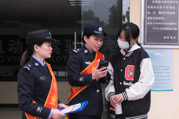 这是4月26日反诈女警宣传队到盛虹驾校开展防范电信网络诈骗犯罪宣传的一幕。反诈宣传队还引导驾校学员下载国家反诈中心APP,并教会他们使用方法。同时,还深入到闹市街头、商场、商铺、餐厅等人群聚集场所,开展精准宣传,通过“1+N”模式扩大宣传防范覆盖面,提升群众知晓率,让反诈知识深入人心。