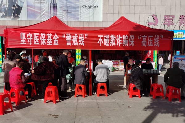 医保局工作人员向过往群众发放《打击欺诈骗保典型案例》、《异地就医服务手册》、《湖北省医疗保障宣传手册》等宣传折页共计2000多份,展示宣传展板4个,现场答疑解惑100多人次,免费义诊80多人次。