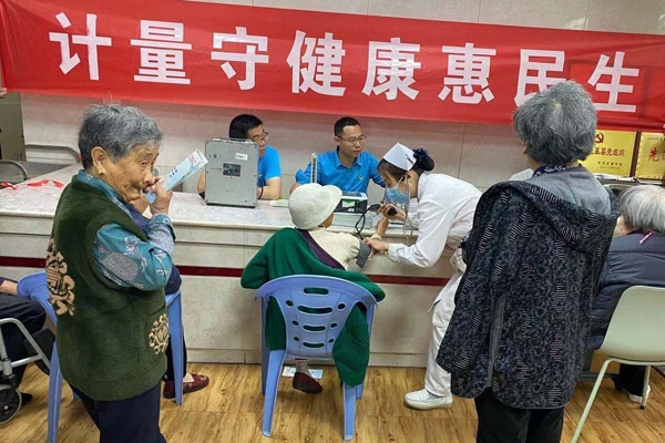 当天,公检中心工作人员带着血压计检定装置、标准砝码、验光机等检测设备,对市福利院的血压计和健康秤进行了免费检定检测。同时,还免费为部分在院老人开展了检查眼睛、量血压、清洗眼镜等服务,并向老人及工作人员宣传讲解计量知识,发放计量宣传资料,让大家共同关注计量、参与计量。