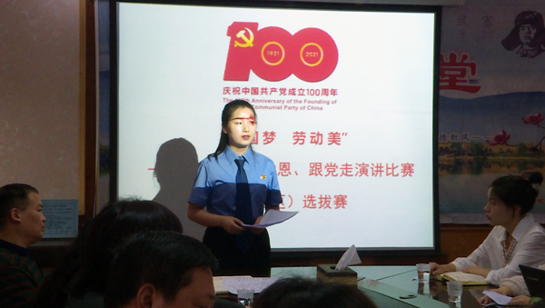 本网讯记者刘毅 通讯员徐鸣旻报道: 5月14日,宜城市委宣传部、市总工会联合举办的“‘中国梦 劳动美’--学党史、感党恩、跟党走”主题演讲比赛在市总工会举行。