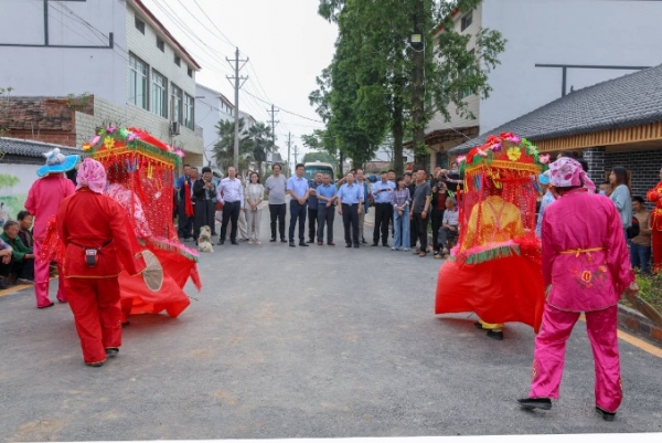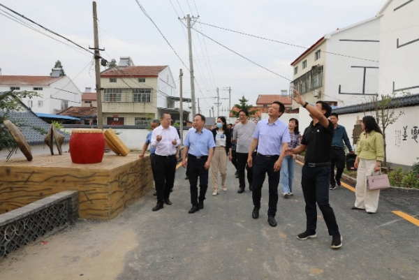 杨育生一行先后到流水镇莺河村文艺小院、孔畈村花鼓戏小院、南营办事处十方院村移民影像小院、根雕奇石小院和金山村文艺长廊进行参观。