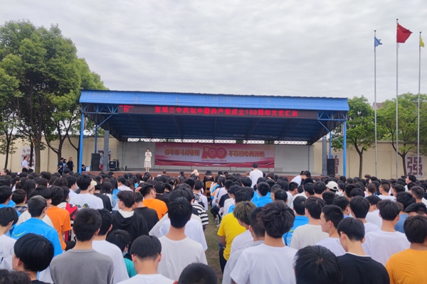本网讯通讯员朱海波报道:5月24日,宜城三中举行建党100周年暨校园文化艺术节展演活动,激发学生的爱党爱国情感,丰富学生的校园生活。