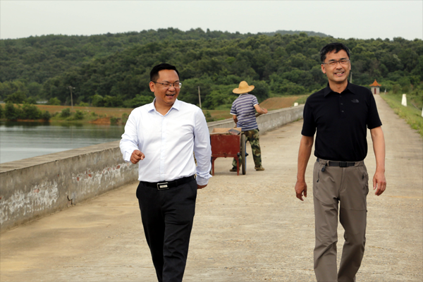 朱晓林一行沿水库堤坝一路巡查至溢洪道处,随机查看了堤坝和溢洪道安全管理以及隐患排查除险情况,查看了水库水质,询问有无投肥养鱼情况。当得知该水库水质已经保持三类水质近十年的情况后,朱晓林对水库管理人员的辛勤劳动给予了肯定,希望他们继续加强水库面源污染防控,坚决杜绝再出现新的污染源。