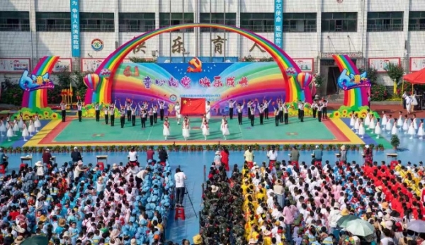 本网通讯员徐广军 杜遵刚报道:6月1日,宜城市南街小学“童心向党·快乐成长” 庆祝建党100周年暨第8届校园体育艺术节活动在该校操场举行。