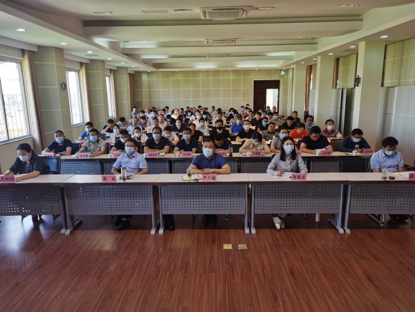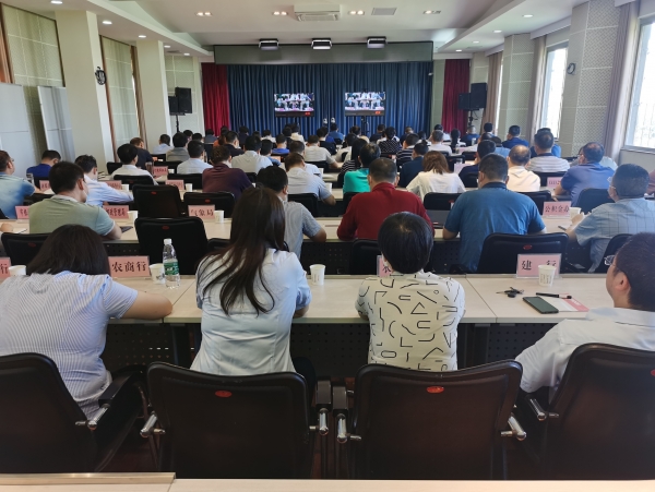 严广超、何晓波、周斌、张耀刚、那•娜仁高娃等市领导在宜城分会场参加会议。