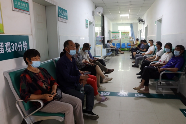 接种点现场,该卫生院规范设置了登记窗口、接种大厅、留观区,各种指示标志张贴在醒目位置。虽然临近中午,接种疫苗的人群仍然有序排起长龙,依次进行疫苗接种。