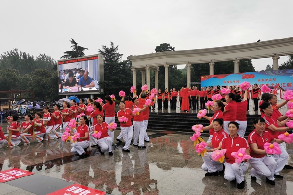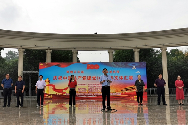 本网讯记者邬玲玲通讯员余洋报道:6月12日,宜城市庆祝中国共产党建党100周年文体汇演在燕京花苑举行,来自全市的40多支演出团队1000多名中老年文体爱好者参加了演出。市领导宋军、时瑜、那?娜仁高娃、丁国锋等观看了演出。