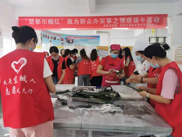 本网讯通讯员 王燕 张雨楠 记者易振波报道:又是一年端午节,粽叶飘香传温情。6月12日,宜城市妇联带领“楚都巾帼红”志愿者在福临家政培训公司开展“情暖端午”包粽子活动,为弱势群体送去端午节的温暖。