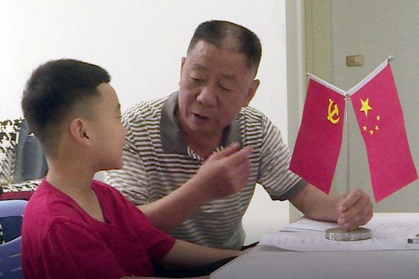 6月20日是星期天,老党员贾兆旺在带孙子享受天伦之乐的同时,不忘给孙子讲授党的知识,开展党史学习教育。