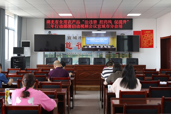 在宜城分会场,市农业农村局、市场监管局、公安局等相关单位负责人20多人参加会议。