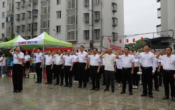 活动在庄严的国歌声中拉开序幕。全体党员举起右手,重温入党誓词,铿锵有力的宣誓声回荡在小区上空。社区和“双报到”党委有关负责人现场为辖区符合条件的的老党员颁发了“光荣在党50年”纪念章。