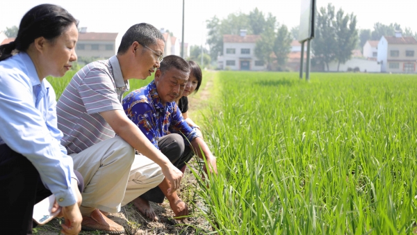 市农业技术专家还到田头查看肥水管理和病虫害防治情况,并根据水稻的长势,现场为农民朋友“支招”。
