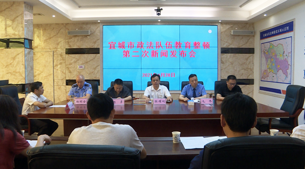 本网讯记者刘毅报道:6月28日,宜城市召开政法队伍教育整顿第二次新闻发布会。副市长、公安局局长张耀刚通报全市政法队伍教育整顿顽瘴痼疾整治成果,回应群众关切,接受社会评议和监督,为深化教育整顿工作营造良好舆论氛围。