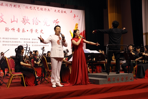 本网讯记者李勤 周波报道:6月28日,宜城市人民会堂歌声嘹亮、乐声阵阵,省文化和旅游厅荆楚“红色文艺轻骑兵”走进宜城,《唱支山歌给党听》聆听音乐学党史·特色音乐党课在这里举行。全市机关党员干部代表现场聆听了党史经典革命歌曲,重温党史经典文艺作品,庆祝中国共产党成立100周年。市领导武义泉、严广超现场聆听。