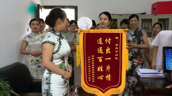 本网讯记者刘妙然 通讯员张雨楠报道:近日,宜城首期茶艺班学员将一面绣有“付出一片情 连通百姓心”的锦旗送到市妇联,感谢“娘家人”对女性就业的支持和帮助。