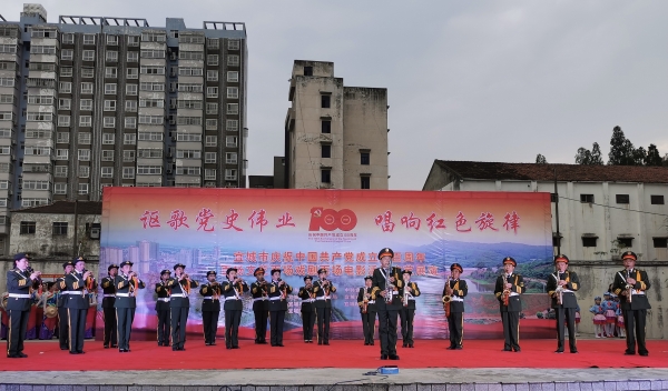 本网讯记者邬玲玲 通讯员李丹报道:6月29日晚,宜城市在紫盖山广场举办“讴歌党史伟业 唱响红色旋律”展演,庆祝中国共产党建党100周年。