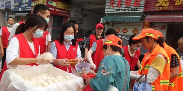 本网讯记者易振波 通讯员汪丽 罗彩虹报道:6月30日早上6点30分,宜城市委常委、宣传部长刘超带领宣传部志愿者再次来到免费爱心粥店振兴路总店,为该店送去面、油、糯米、咸菜等物资,并结合党史学习教育,开展“我为群众办实事”活动,为庆祝中国共产党成立100周年献礼。