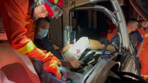 本网讯记者钟军 通讯员张金蓉报道:7月13日03时02分,宜城市文昌路下坡处,两辆载鱼货车发生追尾,一人被困。宜城消防接报后,迅速到场展开救援。