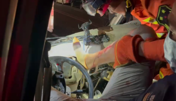 消防员立即利用破拆工具中的扩张器和液压顶杆对事故车辆进行破拆。救援人员小心翼翼,避免对被困司机造成二次伤害,同时对被困司机进行安抚,以稳定情绪。历经20分钟,消防指战员成功将被困驾驶员救出。