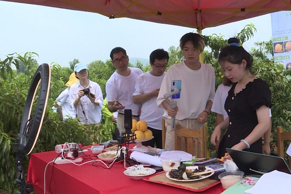 直播现场设在王台村一处果园内,4名主播利用淘宝直播,以主播带货、花样试吃、有趣互动等形式,积极推销这里的黄桃、紫薯、稻米、皮蛋、葛粉等特色农产品。直播吸引了不少网友纷纷点赞下单,仅当天上午就成交订单1019笔。