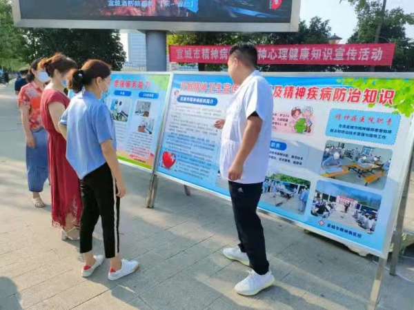 本网讯通讯员任丽丽 李勇杰报道:7月30日,宜城市精神病医院在楚都公园入口处设立宣传台,开展精神健康义诊活动,这是落实省、襄阳市影响群众健康突出问题“323”攻坚行动,将精神卫生服务工作由院内救治延伸到社会早期干预的一项社会实践活动。
