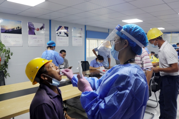 建筑工人王志清说:“项目部组织我们进行核酸检测,对我们是一种关心,对自己、对家人、对社会都很有好处,我一定响应号召,把防控工作做好。”